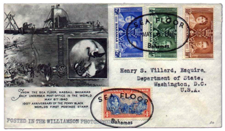През 1939 година започва подводна експедиция на Бахамските острови-Уилямсън. За да популяризира тази експедиция, е била създадена подводна поща. Тя е била краткотрайна; затворена е през 1941 година.